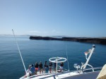 Dann hiess es „Delphine gesichtet“ (da sind ja alle Boote untereinander vernetzt, damit sofort bekannt wird, wo es welche gibt. Und dann rasen alle dahin und die Delphine sind schon weg. Sind ja auch net deppert.) Wir dort hin, aber nix. Lag vermutlich an den Orcas, die jenseits des Hole in the Rock gemeldet wurden. Ui, die würde ich mir ja gerne mal anschauen. Und falls sie nicht näher kommen, wir hatten ja genug Touris an Bord, als Lebendköder für den Walfisch.