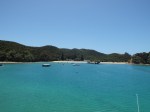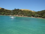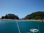 Zur Rückfahrt gings quer durch die Bay, links Inselchen, rechts Inselchen, nach Urupukapuka, wo wir in der Otehei Bay an Land gehen sollten, zum Picknick und zur Erfreuung an Strand und Sitzmöbel. Angelegt, Lunchpaketchen gefasst, runner von Bord, Päuschen, dann wieder zurück an Bord.