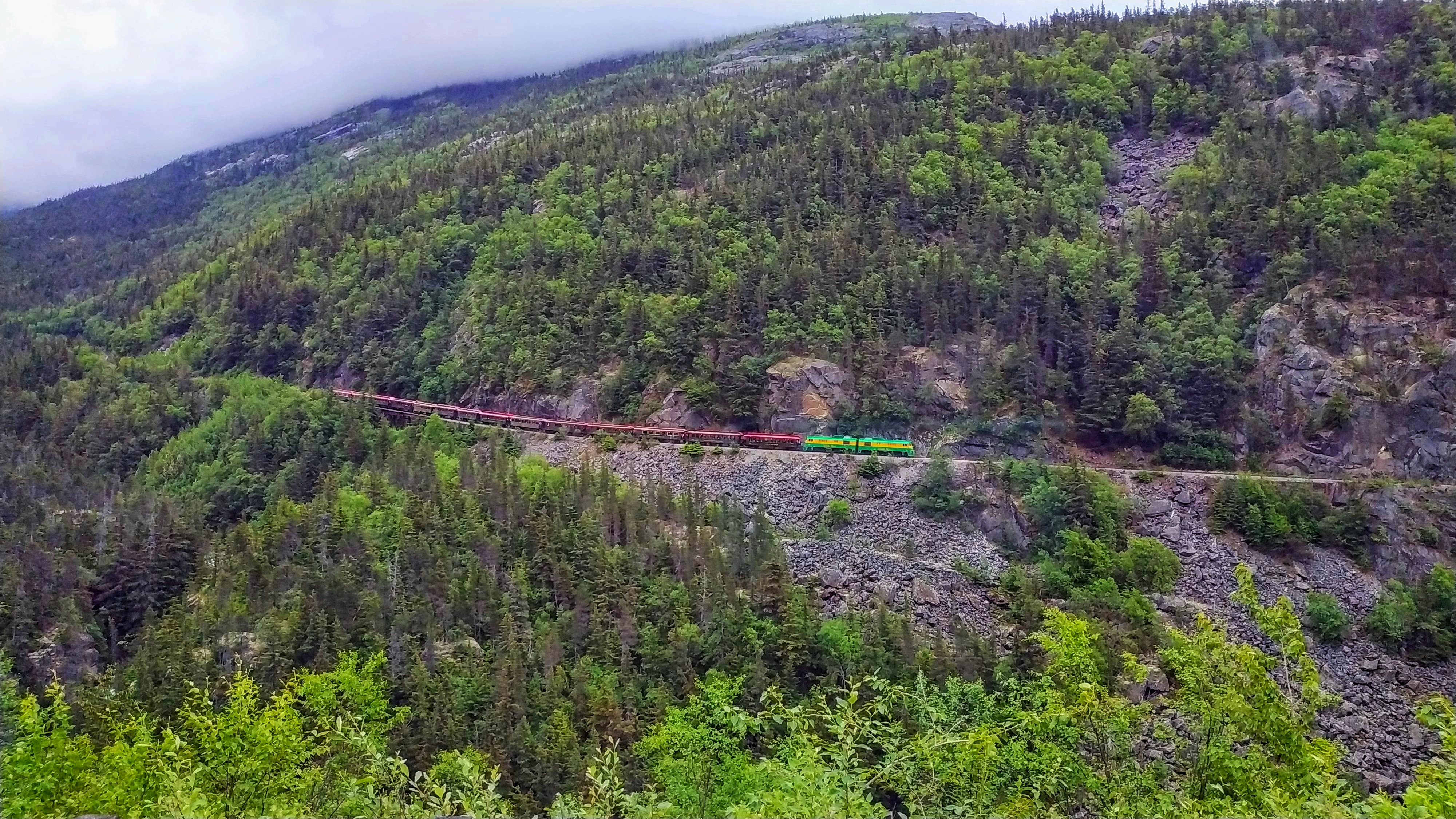 Manchmal hat man Pech bei seinem Landgang. So ein bisschen halt. Wenn man eine Tour bucht, ins Hochland, dann vor lauter Bäumen nur Wald sieht, bevor alles im Nebel verschwindet, ist das bisserl blöd. So geschah es uns bei unserem Ausflug mit der White Pass & Yukon Railway.