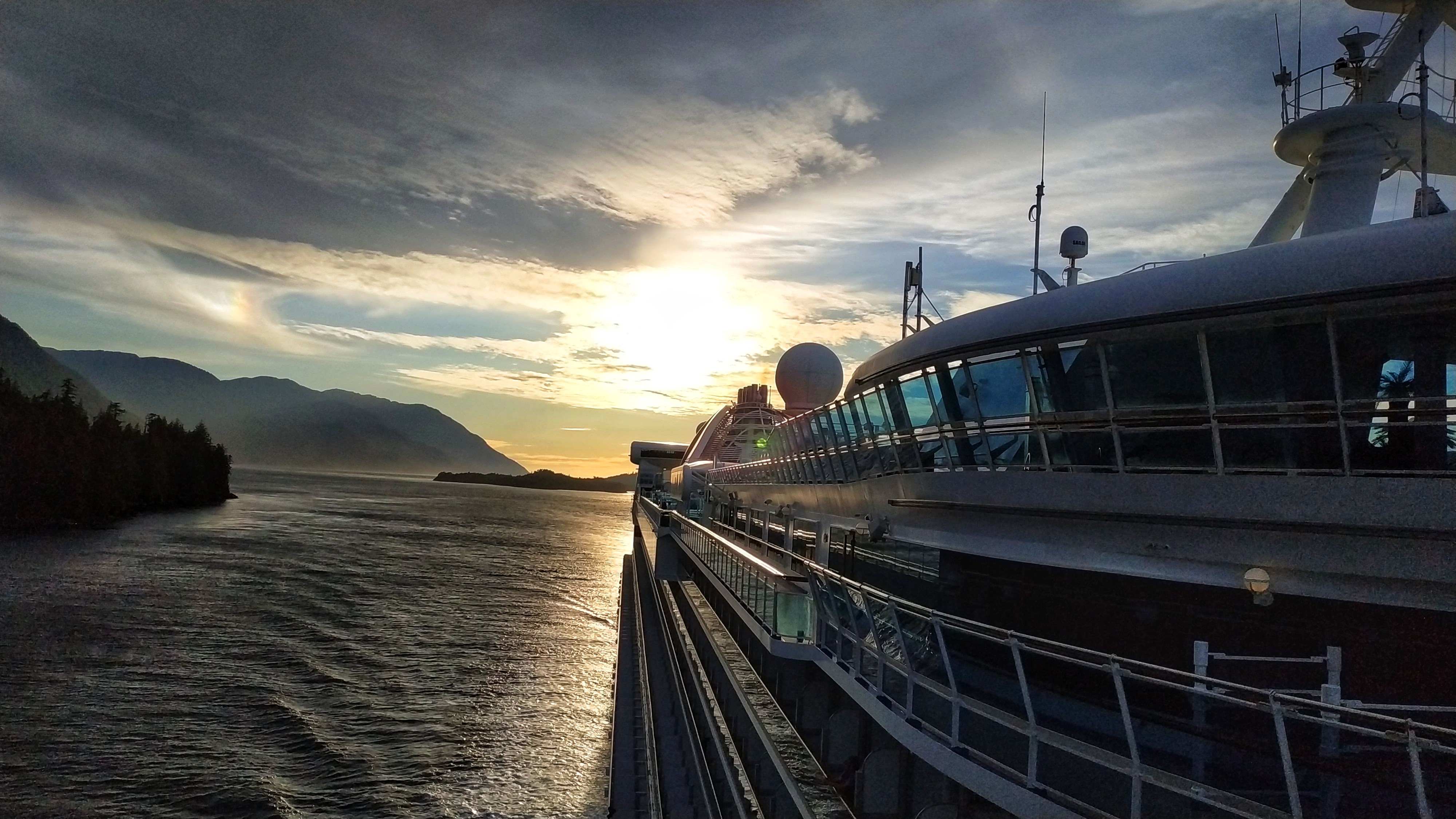 Um von den Käffern im Südwesten in die Städte des Nordwestens zu kommen, muss man südlich durch die Inside-Passage. Somit hat man einen letzten entspannten Seetag, man geht zum Bingo, man haut sich ein letztes Mal Kuchen rein, man rennt draussen rum und macht einen auf Naturalist. Und es hat sich ausgezahlt, Orcas kamen uns entgegen, Delfine begleiteten uns, die tolle Landschaft war zum greifen nahe. Ein passender Abschluss.