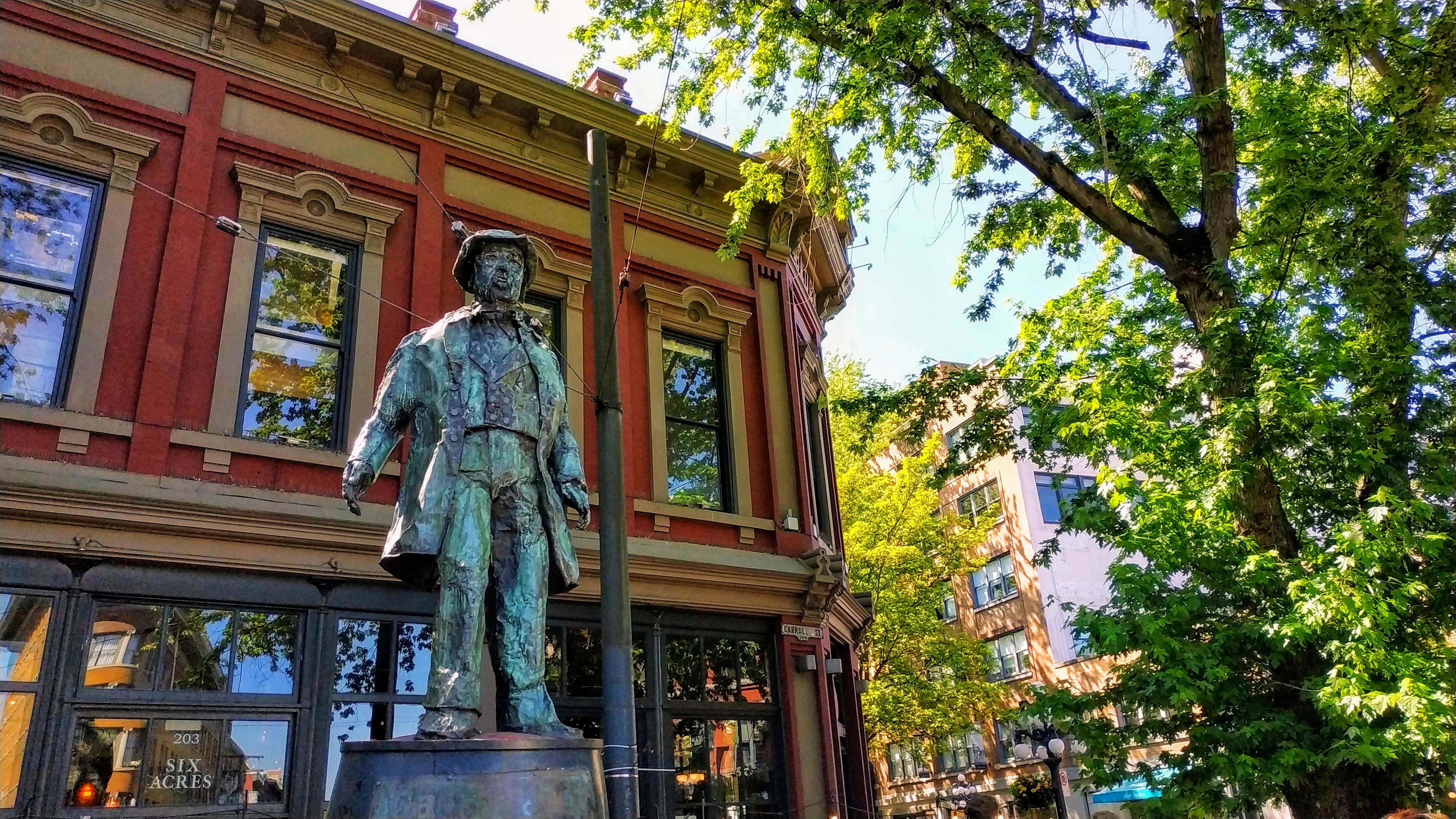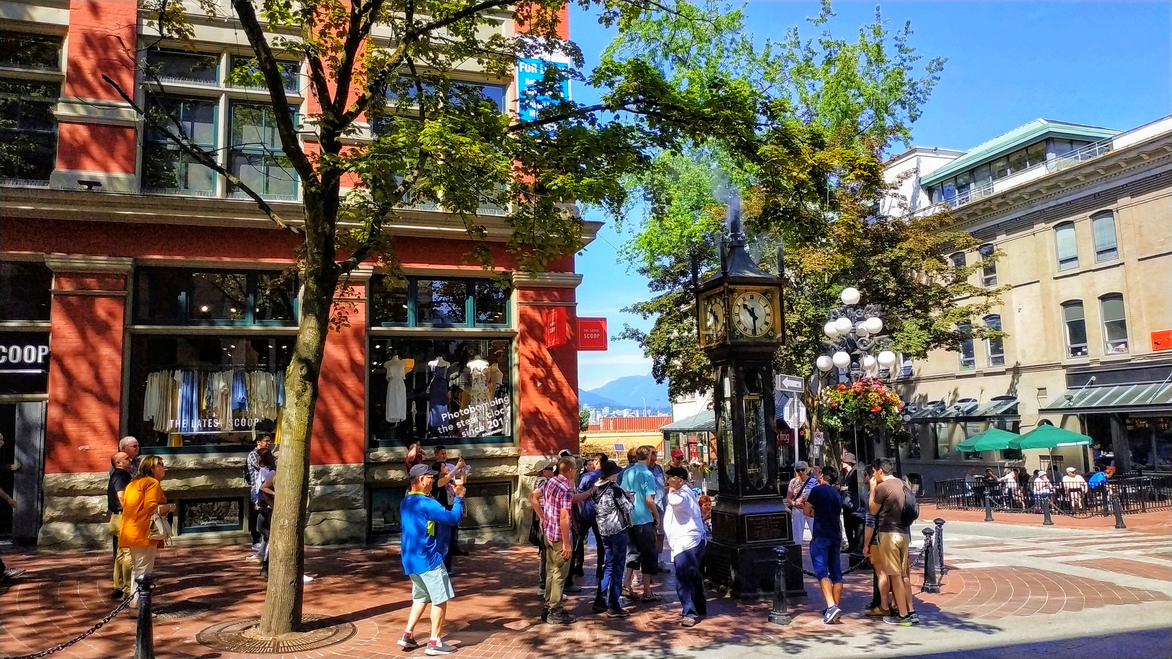 Per Bahn gings zu unserer Unterkunft (Geheimtipp: klick), wir konnten schon um 11 ins Zimmer, dann raus, um mittels Hoponhopoff die Stadt zu erkunden. Sowas machen wir gerne, bei Erstbesuch, da man einen tollen Überblick bekommt. Und wenn man dann noch Glück und einen Fahrer hat, der launig über alles mögliche informiert, dann ists doppelt subba. Wir fuhren rum, quer durch den Stanley Park (Gedächtnisvermerk: beim nächsten Mal hier raus und mittels Rad umher), stiegen auf Granville Island aus (Fisch bei einem „eat where the locals eat„-Laden, dann sensationelle Donuts in der Markthalle entdeckt), dann wieder weiter mitm nächsten Bus nach Gaslight (hier selbstverständlich die üblichen Bilder bei Gassy Jack und dieser dampfenden Uhr gemacht), dann durch Downtown zur Robson Street zum Shoppen und nachfolgendes Abendmahl. Leider habe ich zu spät entdeckt, dass an diesem Abend ein Canadian-Football Spiel stattgefunden hat (der örtliche Verein gegen einen aus dem kanadischen Hinterwald), sonst wären wir dahin und hätten uns unflätig benommen.